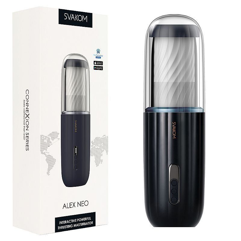 Masturbador Masculino com massageador Interativo, SVAKOM ALEX NEO ideal para o homem que, quer aproveitar o máximo do prazer no seu momento à dois, o uso possibilita ao homem uma estimulação que irá levá-lo a um outro patamar do prazer onde orgasmos e ejaculações serão muito mais intensos.